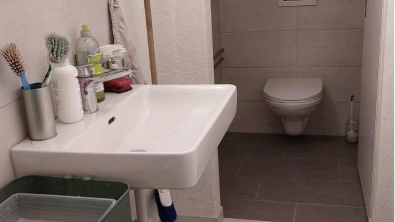 Das Atelier befindet sich etwas versteckt, nach hinten versetzt im Keller eines Wohnhauses. Trotzdem sind die Räume hell.